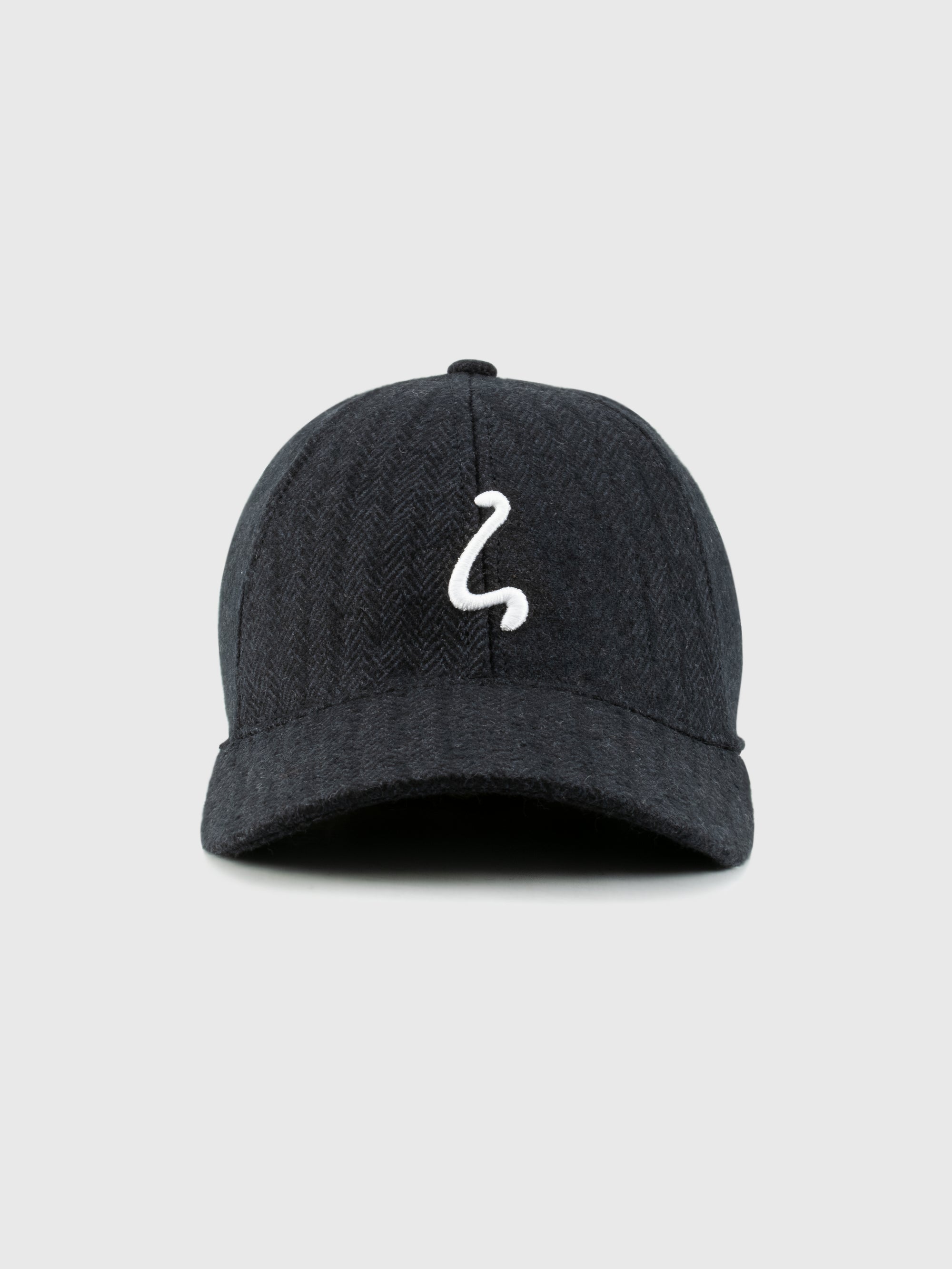 Squigg-"L" Cap - Dark Herringbone Wool/Cashmere
