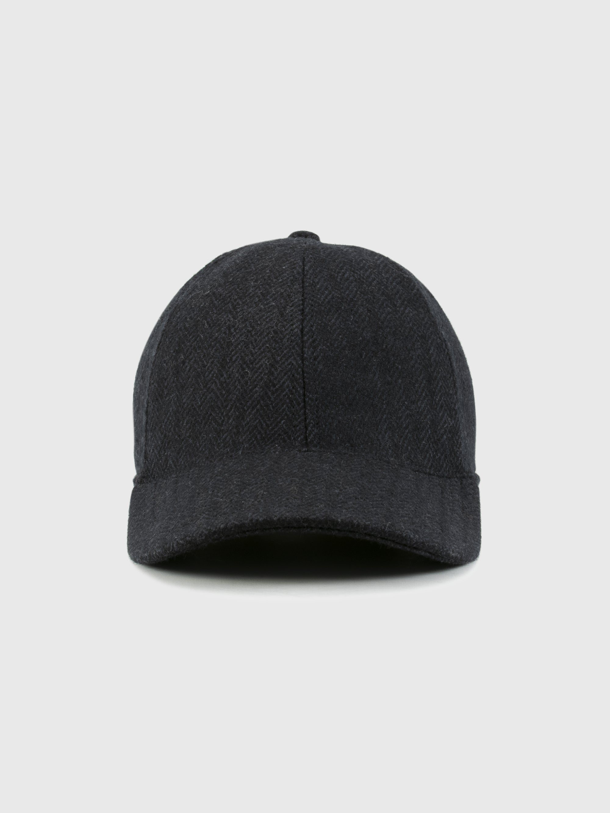 Fingerprint Cap - Dark Herringbone Wool/Cashmere